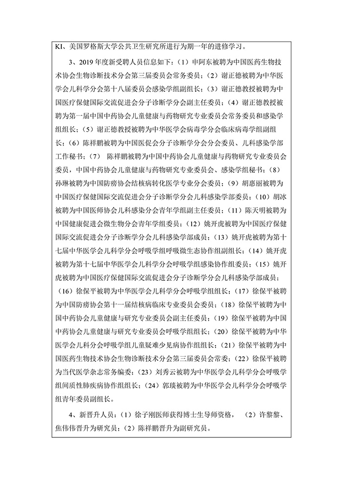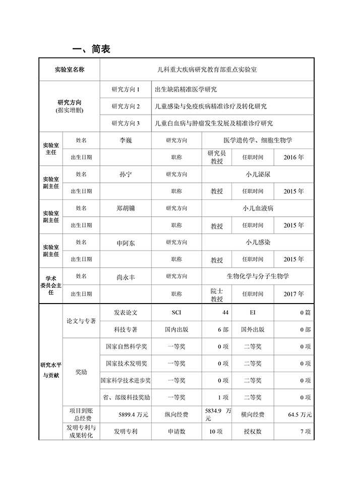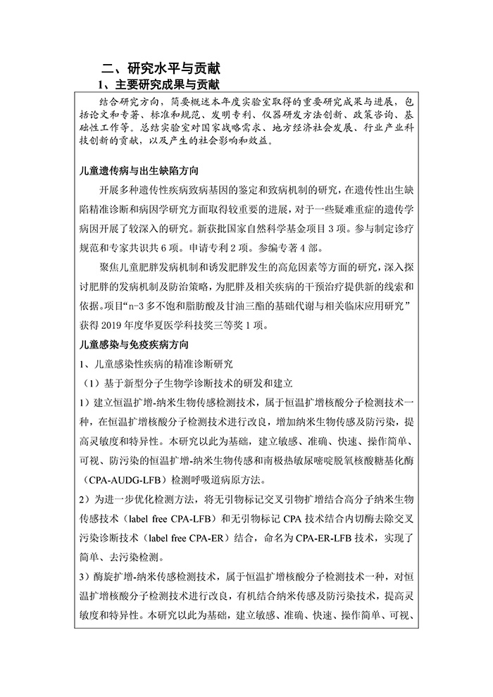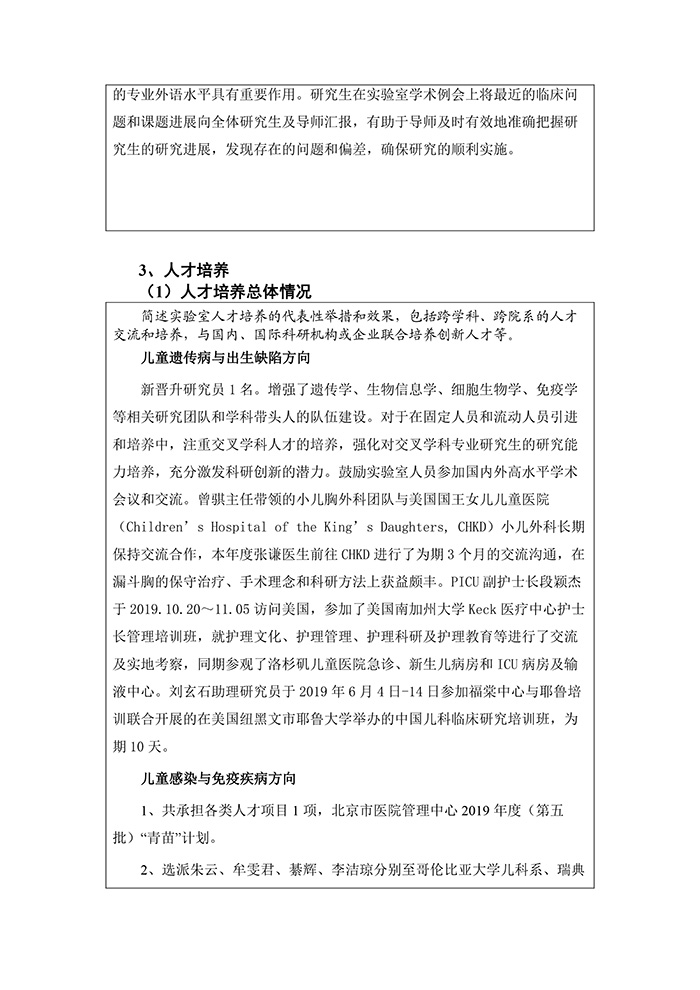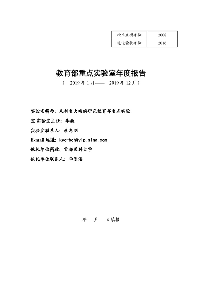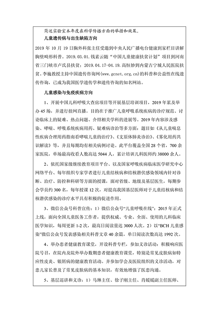儿科重大疾病研究教育部重点实验室 2019年年度总结及计划