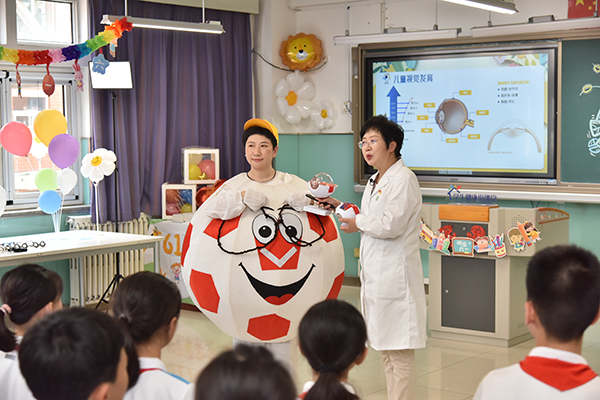 北京儿童医院党委书记张国君也以“旁听生”的身份上课。“首先祝大家‘六一’儿童节快乐!今天我很高兴和你们一样,像名小学生一样听了一堂课。”他在讲话中表示,近视是影响中小学生的健康问题,我们在儿童医院工作体会很深。今天李莉主任走进学校,讲授预防近视的知识,希望你们掌握以后再教给家人和兄弟姐妹,让这堂课的收获更大。