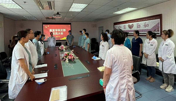 7月4日中午,康复学科党支部在门诊楼11层会议室召开全体党员大会,就预备党员徐晓萌同志转正、接收曹朗同志为中共预备党员事宜进行了讨论和表决。会议由支部书记李海天同志主持,支部党员、积极分子参加大会。
