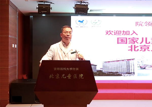 倪鑫院长在8月30日为新员工以“传承儿医精神文化,携手创建国家中心”为题授课,并在新员工欢迎会上肯定了新员工所展现出的精神风貌和出众才华。倪鑫院长表示,儿童医院正处于跨越式发展阶段,也正是需要新生力量的关键时期,愿未来与各位新员工共同见证国家儿童医学中心的建设发展。孩子是祖国的未来,儿科医生是儿童健康的守护者。医者仁心,希望大家要心怀爱心,将爱心撒向每一个患儿的同时,也要关爱同事,虚心学习,团结协作、共同进步;要心怀敬畏之心,严谨、踏实、认真地投入到工作之中。他还强调,新员工在新的岗位上,要有“咬定青山不放松”的精神,燃烧青春热血,坚守信念使命,勇于创新敢于探索,承载起国家儿童医学中心心系全国,走向世界的责任。期望大家在工作岗位上再展宏图,推动中国儿童健康事业继续发展壮大。