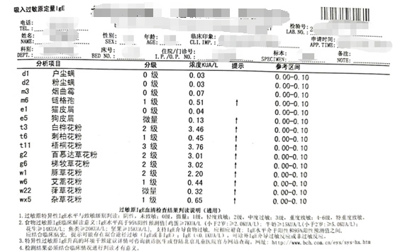 过敏原检测结果示例: