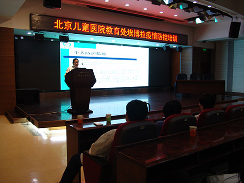 为加强埃博拉出血热防范工作,切实落实各项防控措施,按照国家卫计委、北京市卫计委及医院要求,教育处邀请我院疾控处、感染管理科老师于11月2日下午2点,在十二层会议大厅对全体学生进行了埃博拉疫情防控培训。统招研究生、七年制学生、护校学生、2014级规范化培训住院医师200余人参加了培训。