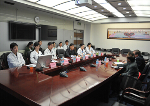 张建副院长首先代表医院热烈欢迎了外宾的到访,并对我院医疗情况、学术水平和历史沿革作了简要介绍,表示两院在医院规模和社会影响力上都十分相似,为日后合作交流奠定了坚实的基础。Arnold Strauss教授对北京儿童医院集团体系和共同开展科研合作项目表示了浓厚的兴趣。座谈中,双方就罕见病诊断,基因学、生物信息学和器官移植等方面的研究进行了交流,并对科研合作和人员培训等方面进行了探讨。最后,外宾参观了我院心脏中心病房和临床样本库。