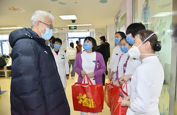 2024年2月9日除夕上午,市卫生健康委党委委员,市医院管理中心党委书记、主任王宇来北京儿童医院调研安全工作并慰问一线医务人员。副院长赵成松、工会主席王爱华及院办、门诊部、护理部、工会、运保处、保卫处、宣传中心等部门相关负责人陪同。