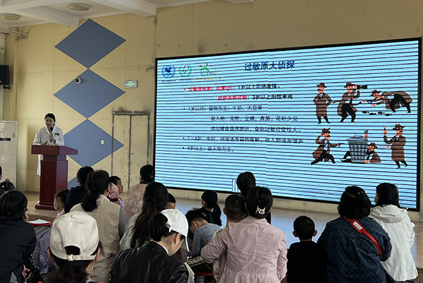 活动于上午9点正式开始,首先,北京儿童医院耳鼻咽喉头颈外科副主任医师肖潇为大家带来了《过敏性鼻炎的日常防护》专题讲座。肖潇医生首先向在场的小朋友们及家长介绍了过敏性鼻炎的基本知识,包括其成因、症状、预防方法等。通过简单易懂的语言和生动的实例,让小朋友及家长对过敏性鼻炎有了初步的了解。随后,肖潇医生重点讲解了如何预防过敏性鼻炎。她强调,避免接触过敏原及日常护理是关键,例如要避开花粉、尘螨等常见过敏原,注意室内清洁和通风换气,保持良好的生活习惯等。此外,专家还推荐了一些适合儿童的鼻腔清洁方法。
