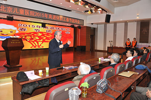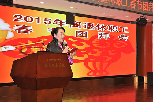 2015年1月22日上午,我院老干部处组织的“北京儿童医院2015年离退休职工春节团拜会”在十二层报告厅举行。党委书记王天有、党委副书记丁枭伟与四百余名离退休职工欢聚一堂共迎新春。