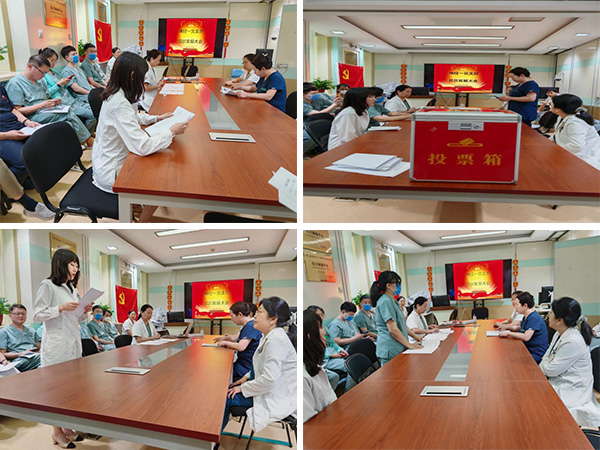 会议由神经一党支部书记丁昌红同志主持。张曼、邓劼两位发展对象分别宣读了自己的《入党志愿书》,汇报个人情况。随后入党介绍人分别介绍两位同志的情况,组织委员李华代表支委会报告对两位同志的审查情况。与会党员对两名发展对象能否入党进行逐个讨论,大家表示张曼同志积极肯干,任劳任怨,平时能团结同志,为人诚恳,在群众中的威信较高;邓劼同志工作踏实,甘于奉献,敢于担当,在工作中起到一定先锋模范带头作用。接着,大会采取无记名投票方式对两位同志进行表决。支部书记宣读支部大会决议,同意发展张曼、邓劼两位同志为预备党员,并报院党委会审批。张曼同志表态将继续努力,以更高的标准严格要求自己,全心全意为人民服务,为党和国家的事业贡献自己力量;邓劼同志表态成为预备党员后一定积极学习党的理论知识,在工作上积极进取,争取早日转正。最后,神经康复总支书记李海天讲话,她肯定了两位同志一直以来良好的工作态度和优秀的表现,同时也提出了希望和要求,希望大家加强理论学习,强化党性修养,高质量做好各项工作,发挥党员的先锋模范作用,真正发挥党员战斗堡垒作用。