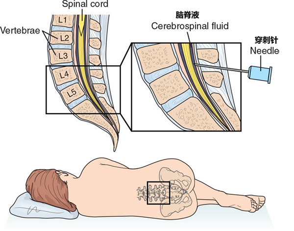 腰椎穿刺,简称“腰穿”,是指用腰椎穿刺针在腰椎间隙处的皮肤穿刺,逐步进针刺入蛛网膜下腔后留取少许脑脊液进行化验检查的一种临床诊断技术(图1)。跟静脉穿刺抽血一样,是一种常规安全的穿刺,只是穿刺的部位以及留取的标本不一样。