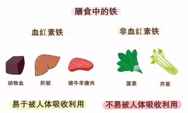 3、做到膳食平衡,营养合理,多吃含铁丰富食物。膳食中的铁包括血红素铁和非血红素铁,其中血红素铁易被人体吸收。