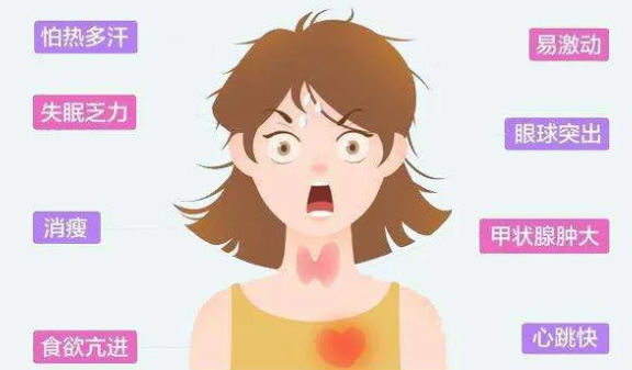 (1)高代谢症状:孩子吃的多,但是体重不增或者下降,大便次数增多,怕热、多汗,脾气急躁,上课注意力不集中,有的会出现成绩下降,易疲劳、失眠,胸闷、心悸,严重者可出现心律失常、心房颤动;