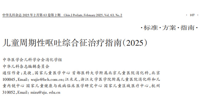 近日,由首都医科大学附属北京儿童医院消化科主任吴捷牵头,在临床流行病与循证医学中心主任彭晓霞、副研究员刘雅莉的指导下,中华医学会儿科学分会消化学组、中华儿科杂志编辑委员会携手国内众多儿童消化科、神经科、精神科、营养科、药学等领域专家,共同编写完成了中国首部《儿童周期性呕吐综合征治疗指南(2025)》。该指南已正式在权威期刊《中华儿科杂志》上发表。