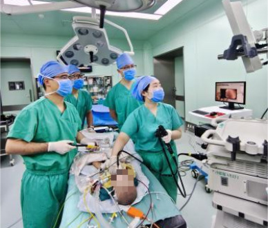 患儿是一名3月龄女婴,因先天性食管闭锁在外院接受手术后出现食管再闭锁,多次尝试经口及经胃造瘘口逆行置入导丝均以失败告终,传统内镜下扩张治疗陷入困境。面对这一棘手情况,黄金狮主任带领团队经过多次多学科讨论,决定采用国际先进的磁力吻合技术为其进行食管再通治疗。