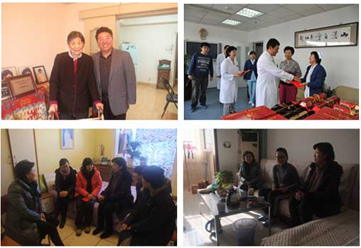 2015年元旦、春节期间,我院倪鑫院长、王天有书记亲自带队走访慰问了张金哲、胡亚美、贾立群等6位院士、专家和劳模,感谢他们为医院做出的杰出贡献,倪鑫院长、聂小莺副主席还为因病致困的11名职工送去了慰问品和慰问金,鼓励他们要树立信心,以乐观的生活态度面对疾病和暂时的困境,做生活的强者,并祝他们在新的一年里身体健康,生活愉快。
