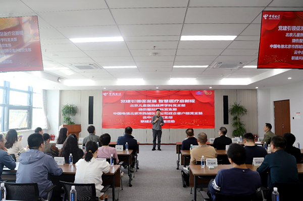 9月25日中午,北京儿童医院超声学科党支部、烧伤整形学科党支部与电信北京市西城区分公司政企客户支部联合开展“党建引领促发展 智慧医疗启新程”主题党日活动。来自北京儿童医院相关支部的30名党员、积极分子及科室负责人,与电信北京市西城区分公司的30名党员代表共同参与,通过科技体验、反诈宣讲与智慧医疗实践,探索“党建+业务”深度融合新路径。