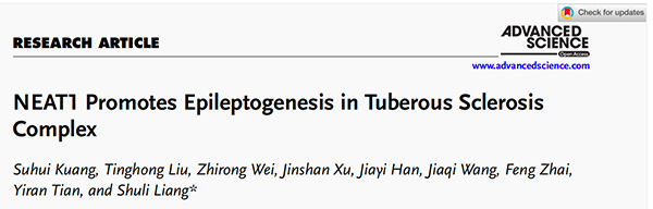 梁树立教授团队揭示 lncRNA NEAT1在结节性硬化症相关癫痫中的重要调控作用