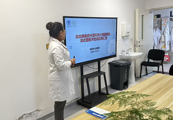 除此之外,实验党小组党员还从临床迫切需求出发,详细解读可测量残留病检测在疗效监测与预后评估中的意义。通过样本处理、数据分析、结果计算等标准化流程,实现微小残留病的量化追踪。通过白血病相关免疫表型标志物识别异常幼稚细胞,构建起“初诊表型核对—异常群体定量—临床决策支持”的全链条服务体系。这种检验——临床双向互动模式,使临床医生能够动态调整治疗方案,显著提升患者生存质量。