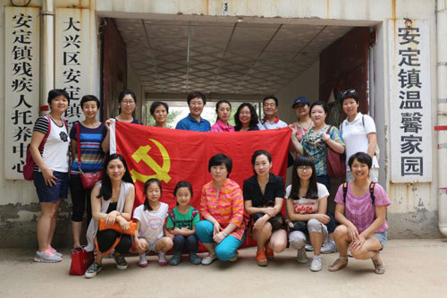 6月28日,检验中心党支部书记王艳、宋文琪主任、马曙轩主任等一行十八名党员,来到大兴区安定镇京安职康站,为这里的残疾朋友送去了检验中心同事们捐献的11箱衣物和生活用品。其中服装340件,棉被1床,CD播放机1台,牙刷20把,牙膏5支,洗发液和沐浴液6瓶。