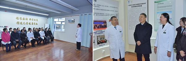 调研团队首先参观了国家儿童肿瘤监测中心与北京市重点实验室“儿童神经发育障碍智能诊疗系统研发与应用研究室”,实地了解了医院在重大科研平台建设、交叉学科研究以及智能诊疗技术临床应用方面的进展。国家儿童肿瘤监测中心副主任李哲、“儿童神经发育障碍智能诊疗系统研发与应用研究室”负责人张国君教授分别介绍了相关平台在协作机制、技术研发及临床服务转化等方面的工作成效。