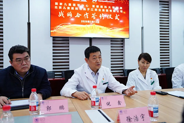 倪鑫与徐浩宇等参加活动的双方代表的共同见证下,北京儿童医院常务副院长赵成松和扬子江药业集团医药经营总公司总经理孙龙代表双方共同签署了《战略合作框架协议》,双方正式确立长期战略合作伙伴关系。根据协议,双方将聚焦三大重点领域深化合作:一是聚焦临床急需,围绕儿童常见病、多发病用药短板,联合开展关键技术攻关,研发更多符合儿童生理特点的优质药品;二是搭建成果转化平台,构建从临床需求到产品研发、成果落地的快速通道;三是推动人才共育、学术共研,助力儿科医疗服务能力整体提升。
