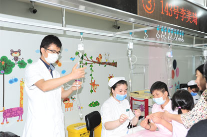 今天再次来到输液中心体验,相较于硬件设施的改善,更让我感到震撼的是服务流程的再造和人性化服务细节的体现。搬迁至新址后,输液中心简化了患儿及家长排队等候的流程,极大地缩短了就诊时间。如果三年前来这儿给孩子输液,需要拿着医生开的方子到输液室旁边的药房交方取药,然后拿着药交到输液室的配药室,然后家长再带着孩子排队等候叫号输液。如今带着孩子来输液,只需要拿着就诊卡在门口报到机上刷卡就能够实现交方取药一体化的流程,家长只需拿着排号条在等候区静等即可。高度发达的信息系统和完善的流水线在后台直接完成了药师审核药方发药、护士配药的全过程,护士们通过一部手机,能够完成从药液配制、扎针穿刺、电脑派位、巡回监护到输完拔针的全过程信息核对,便捷高效的工作方式让人惊叹。