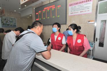 每年暑期都是我院门诊量的高峰期,日均门诊量均达1万多人次。为方便患者就医,志愿服务工作部根据前期调查结果,在门诊大厅、自助挂号机、取药分号机以及门诊楼各层分诊台及相关医技科室等病人较多的地点设立了志愿服务岗位,并首次在输血科、医保办等地派驻志愿者,实现“自助服务不断岗”“贴心服务进科室”的需求。
