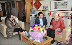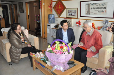 1月25日下午,市卫生计生委副主任钟东波、离退休干部处处长曲新丽、老干部服务中心主任陈志明、组织人事处孟雪一行四人到张金哲院士家中,看望慰问北京儿童医院97岁高龄的张金哲院士。北京儿童医院党委办公室主任陈萍、副主任刘永陪同慰问。