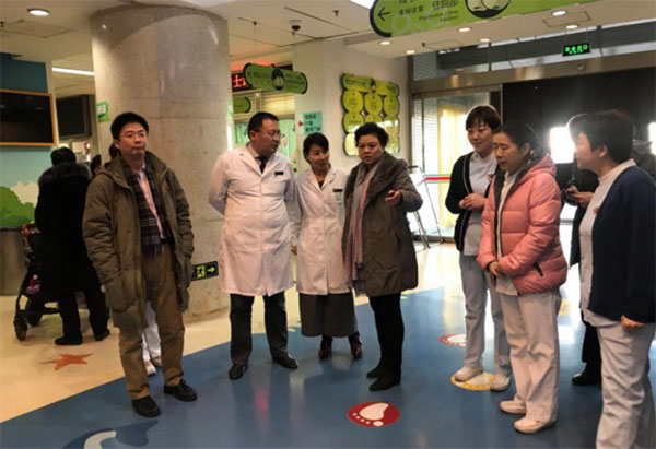 2018年2月7日上午10时,市医院管理局副局长吕一平带领医疗护理处相关同志来到首都医科大学附属北京儿童医院,现场督导检查门急诊医疗工作及节前急诊应急医疗工作。北京儿童医院医疗副院长葛文彤,院长助理、门诊部主任赵成松带领医务处、护理部、保卫处、急诊科、物管中心等相关部门负责同志陪同检查。