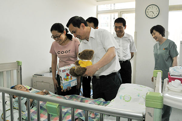 卢彦副市长一行首先来到PICU病房,慰问了正在接受治疗的患儿,并祝福小朋友们六一儿童节快乐,祝愿他们早日战胜病魔、康复出院。随后,领导一行分别察看了北京儿童医院与保定市儿童医院远程查房、与郑州市儿童医院远程会诊的现场情况,并与这两家被托管医院的医护人员进行了远程对话,了解儿科医联体建设在当地医院的落实情况和发展成效。