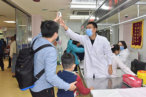 10月25日,国资委何嘉莹(中间)在输液中心体验工作