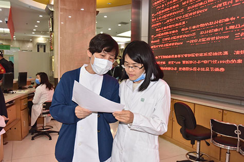 10月29日,科技部侯珊珊(右)在门诊体验专家咨询工作