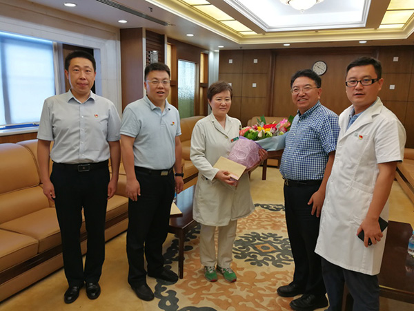 在门诊楼12层接待室,王存亮副处长向困难党员李静同志送上了鲜花和慰问金,代表市医管中心党委表达问候。王存亮副处长详细了解了李静同志的家庭情况,在得知李静同志的爱人身患重病时,关切地询问了病情和生活困难情况,鼓励她照顾好爱人,增强战胜疾病的信心,并祝她爱人早日康复。同时,市医管中心党委通过其他形式慰问了另外两位困难党员。
