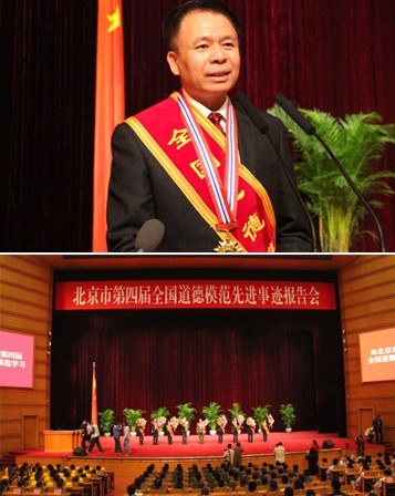 北京市第四届全国道德模范先进事迹报告会由首都文明委举办,邀请第四届全国道德模范贾立群、孙茂芳、高铁成、马虎和五位北京市提名奖获得者参加,中直机关、中央国家机关、国务院国资委、总政机关、驻京部队、首都文明委成员单位领导和首都各界群众代表1000余人现场聆听报告。这是一次为创造“学习道德模范、崇尚道德模范、争当道德模范”良好氛围,宣扬北京精神、传播正能量的盛会。四位道德模范获得者分别作了报告。“敬业奉献模范”贾立群同志,作为医疗系统唯一的代表,做了题为《梦想》的报告,以自己的亲身经历展示了他对儿科医学事业的热爱,对梦想的执着追求,展现了儿童医院“公慈勤和” 的院训精神,展现了医务工作者全心全意为患儿服务的“医者仁心”精神。报告会上,听众为贾立群的敬业精神所折服,为他的无私奉献所感动,眼含热泪听完了报告,并多次爆以热烈掌声。