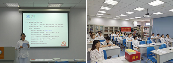 李明悦同志宣读了《入党志愿书》,总结汇报了自己成为入党积极分子以来,通过党组织的教导和培养,在端正入党思想、提高政治觉悟等方面所做的努力和存在的不足。两位入党介绍人宣读了介绍意见,同意推荐李明悦同志加入党组织。医务处处长陈晖从思想觉悟、日常工作等方面对李明悦同志进行了简要评价,并提出了殷切期望。经举手表决,与会党员一致同意发展李明悦同志为中国共产党预备党员。