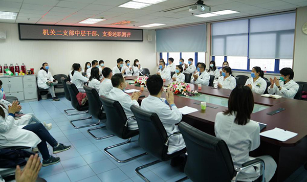 1月25日,在机关二党支部召开的中层干部、支部委员述职测评会上,党委书记张国君,专职副书记、纪委书记丁枭伟,原党委书记沈颖都来了,他们和医院党务部门中层干部、机关二党支部支委及支部各位干部职工一道,回顾过去两年来的工作,谋划医院党建工作未来,为“十四五”开好局起好步,以崭新姿态迎接建党百年。