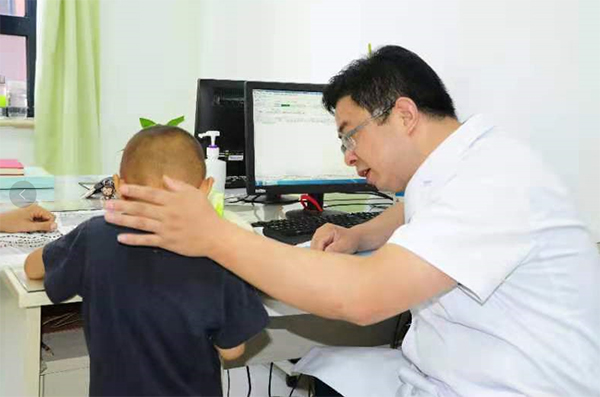 图:崔永华教授与小患者耐心交流(国家儿童医学中心供图)
