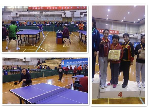 在本次团体比赛中,我院乒乓球女队(马婕妤、赵绯、葛群)奋勇拼搏,一路过关斩将,分别战胜了良乡医院、小汤山医院、北京医院、积水潭医院,杀入半决赛。但在半决赛中惜败于北大医学部最终获得本次女团第四名。
