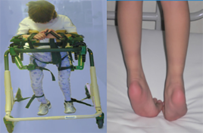 那么,脑瘫的定义是什么呢?脑瘫是指因孕期以及产时、围产期发生的中枢神经系统非进行损伤而导致运动障碍及姿势异常的一组综合征。我国小儿脑瘫康复会议(2014)将脑瘫分为如下几类:痉挛型(四肢瘫、双瘫、偏瘫)、不随意运动型、共济失调型、混合型。其中70-80%的脑瘫为痉挛型脑瘫。痉挛型脑瘫患儿常表现为运动发育落后,肌张力异常,反射异常,主动运动减少。肢体被动屈伸时,有“折刀”样表现。关节活动范围变小,运动障碍,姿势异常。上肢表现为腕关节掌屈,手握拳,拇指内收,手指关节屈曲,前臂旋前,肘关节屈曲,肩关节内收。下肢表现为“芭蕾舞足”、脚尖着地,膝关节屈曲或过伸,髋关节屈曲、内收、内旋,大腿内收,行走时足尖着地,呈“剪刀步态”。临床体征可见锥体束征:腱反射亢进,骨膜反射增强,踝阵挛阳性。