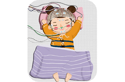 多导睡眠监测采集儿童在睡眠过程中的生理数据包括脑电(EEG) 、眼电 (EOG)、肌电(EMG)、心电 (ECG)、心率、胸腹运动、鼾声、脉搏、血氧饱和度、体位和鼻气流等睡眠呼吸参数,医务人员经过综合分析和判