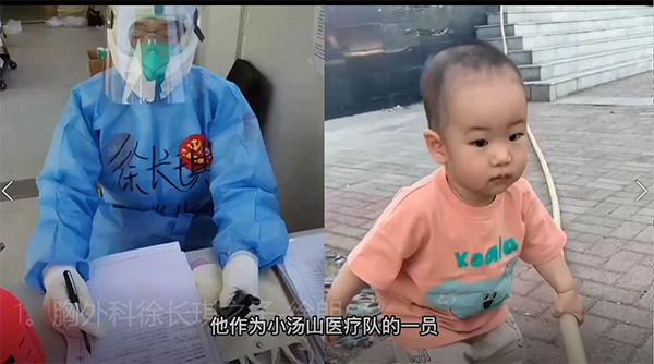 新生儿内科吴丹医生支援小汤山方舱医院近一个月,她6岁的女儿宫若祎在视频中说道:“妈妈是大白,我是小白,我特别为我的妈妈感到骄傲!”